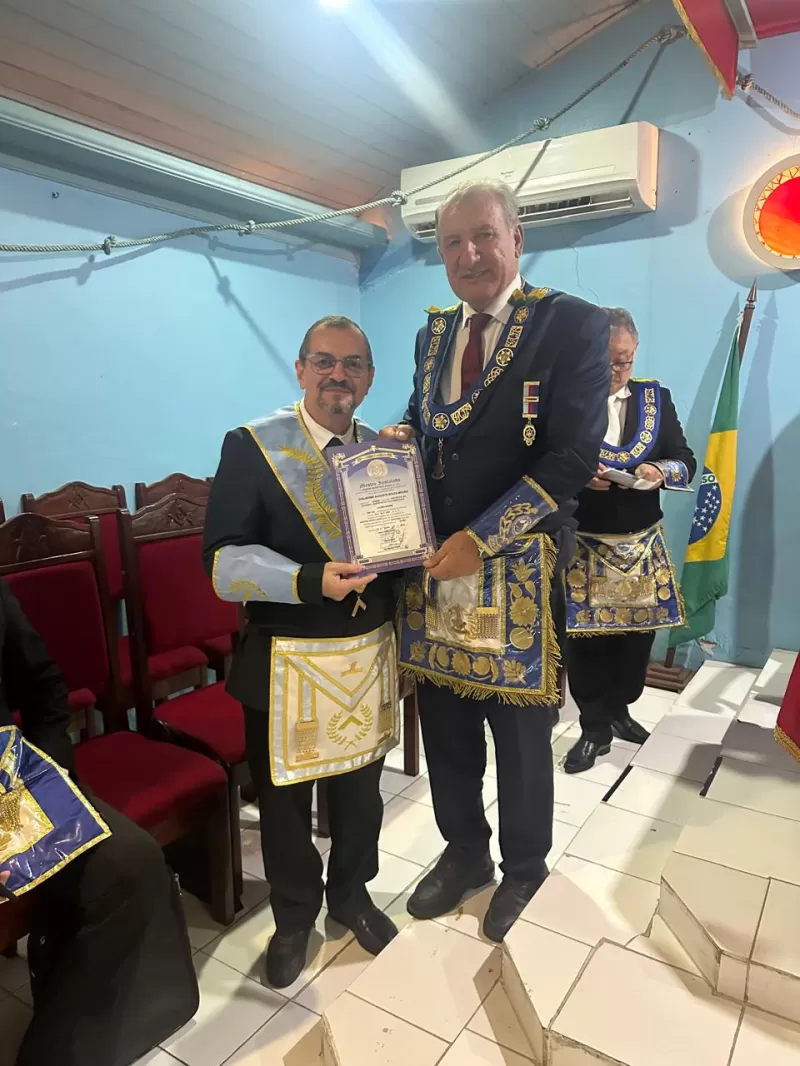 • O Venerável Mestre da Loja Lauro Sodré, Guilherme Moura, recebeu o Diploma e a Medalha de Mestre Instalado, representando mais um marco em sua trajetória.