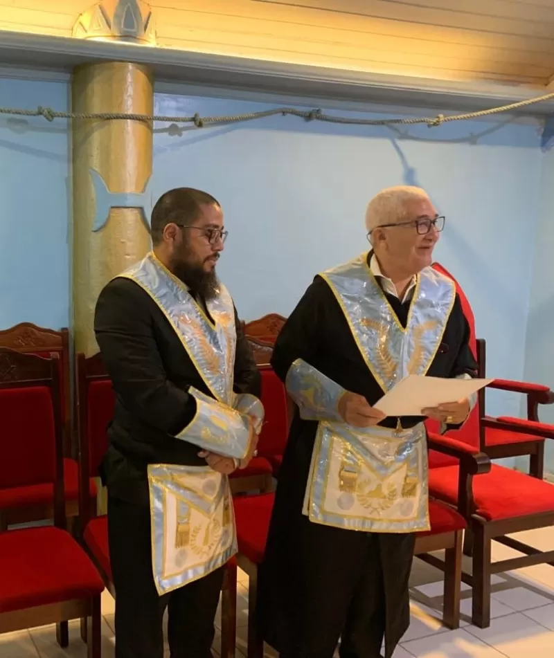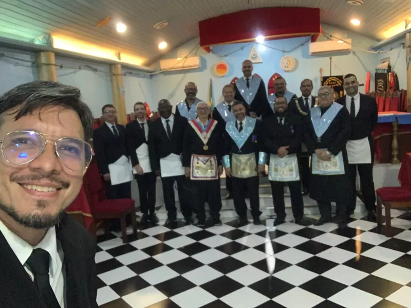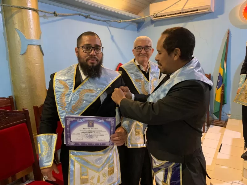 A cerimônia foi conduzida com maestria pelo Venerável Mestre Tiago Sales, tendo ao seu lado os Irmãos Walter Lopes, detentor da Comenda Cruz de Perfeição Maçônica, e Denis Souza, atuando como 1º e 2º Vigilantes.